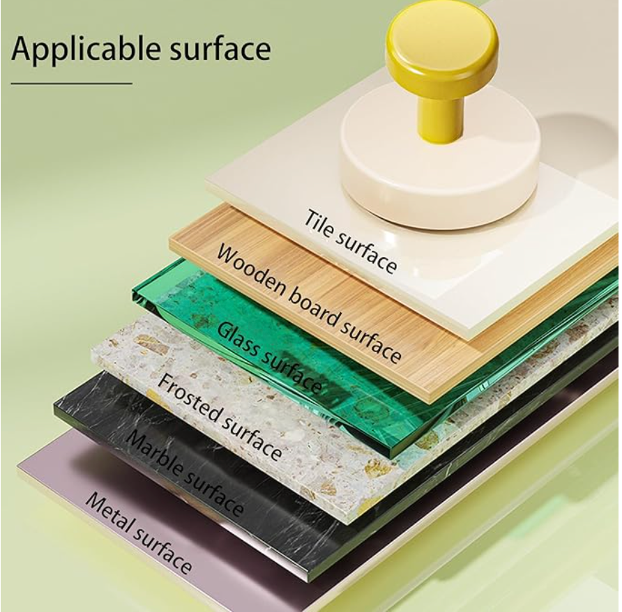 Sticks firmly to tiles, wood, glass, marble, metal, and even frosted surfaces—ideal for kitchens, bathrooms, and wardrobes.